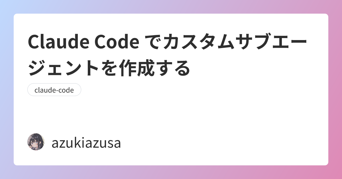 Claude Code でカスタムサブエージェントを作成する