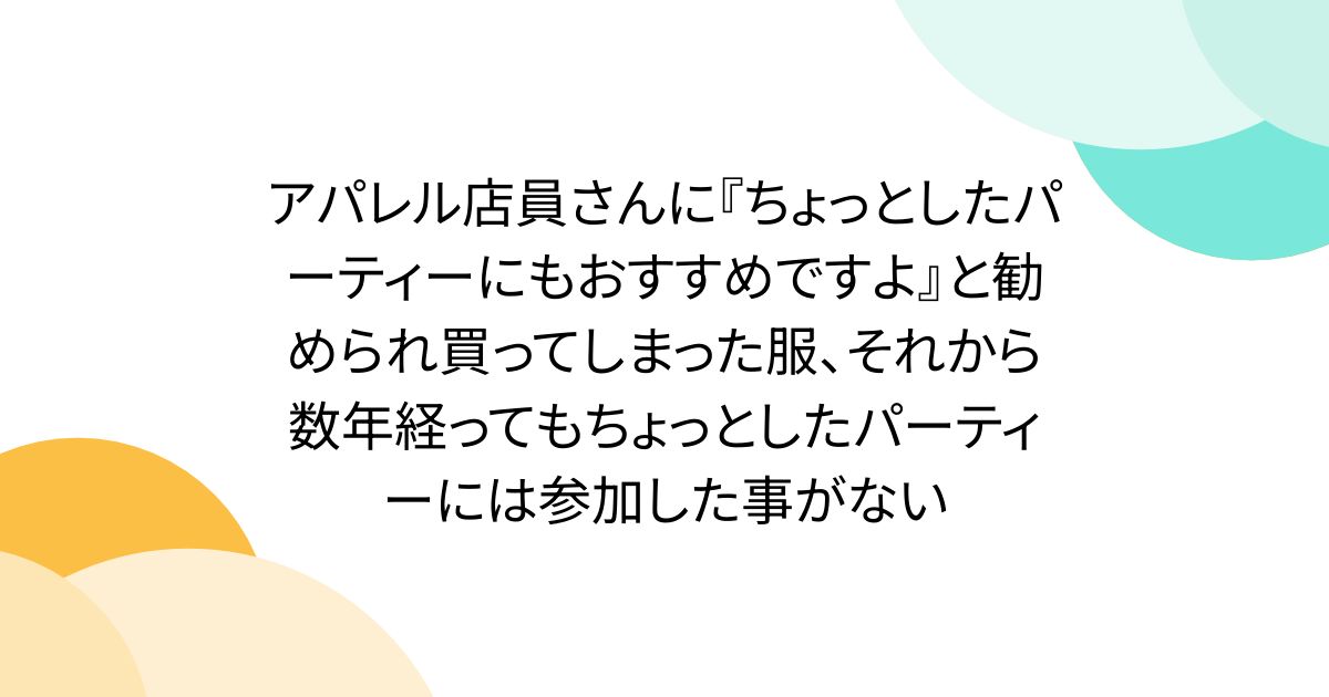 ** ほな結局、アパレル店員が言う「ちょっとしたパーティー」ってなんやねん。