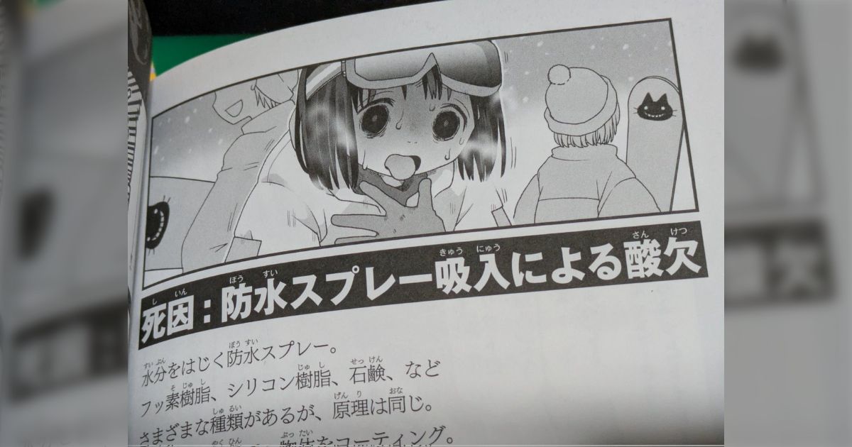 ** 「確かに防水スプレーは便利でやんすが、使用方法を間違えると命に関わるでやんす。特に問題なのは、スキー場の更衣室や車内で使う輩が後を絶たないことでやんす。JKやJDが更衣室でキャッキャしながらスプレーしてる光景、これは集団自殺未遂に等しいでやんす。」