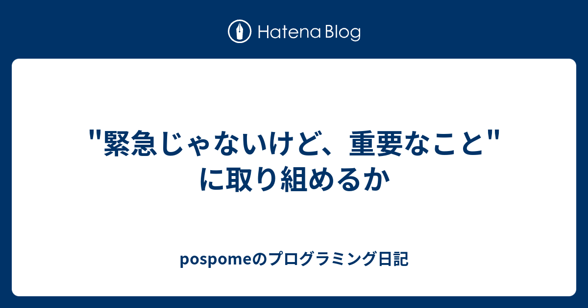 "緊急じゃないけど、重要なこと" に取り組めるか - pospomeのプログラミング日記