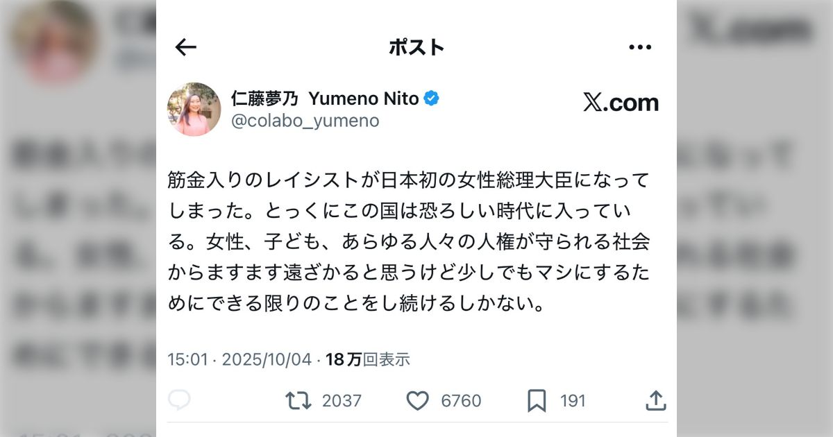 高市総裁誕生で史上初の女性総理誕生、ジェンダーギャップ指数も改善かフェミニスト⇒フェミニストさん、何故か日本初の女性総理大臣誕生に発狂してしまう・・・ - posfie