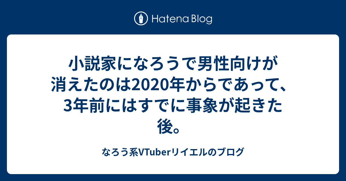 小説家になろうで男性向けが消えたのは2020年からであって、3年前にはすでに事象が起きた後。 - なろう系VTuberリイエルのブログ