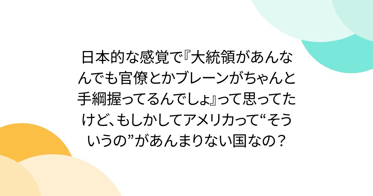 「アメリカって大統領が暴走しても、官僚が止めてくれるんじゃないのだ?日本みたいに。」