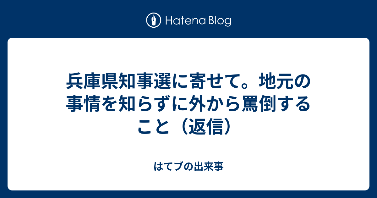 兵庫県知事選に寄せて。地元の事情を知らずに外から罵倒すること(返信) - はてブの出来事