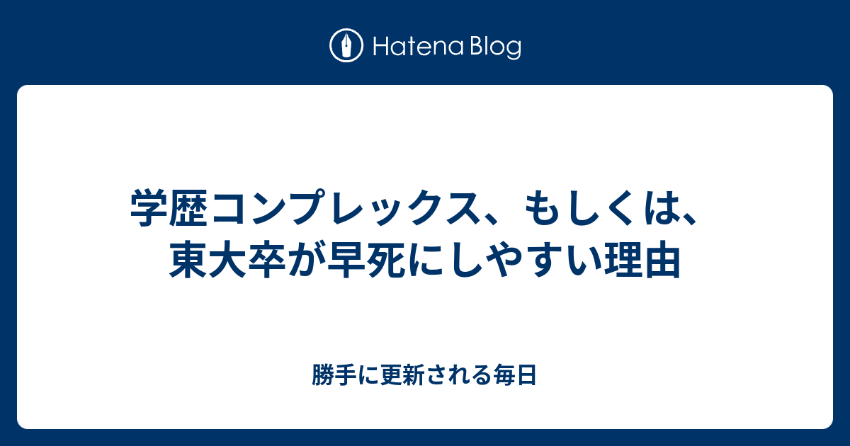 学歴コンプレックス、もしくは、東大卒が早死にしやすい理由 - 勝手に更新される毎日