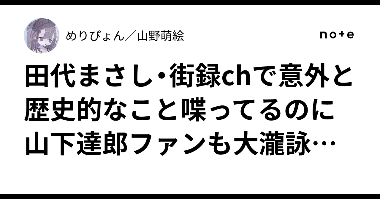 田代まさし・街録chで意外と歴史的なこと喋ってるのに山下達郎ファンも大瀧詠一ファンも話題にしてない件|めりぴょん/山野萌絵
