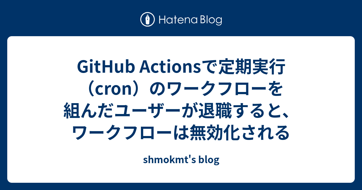 GitHub Actionsで定期実行(cron)のワークフローを組んだユーザーが退職すると、ワークフローは無効化される - shmokmt's blog